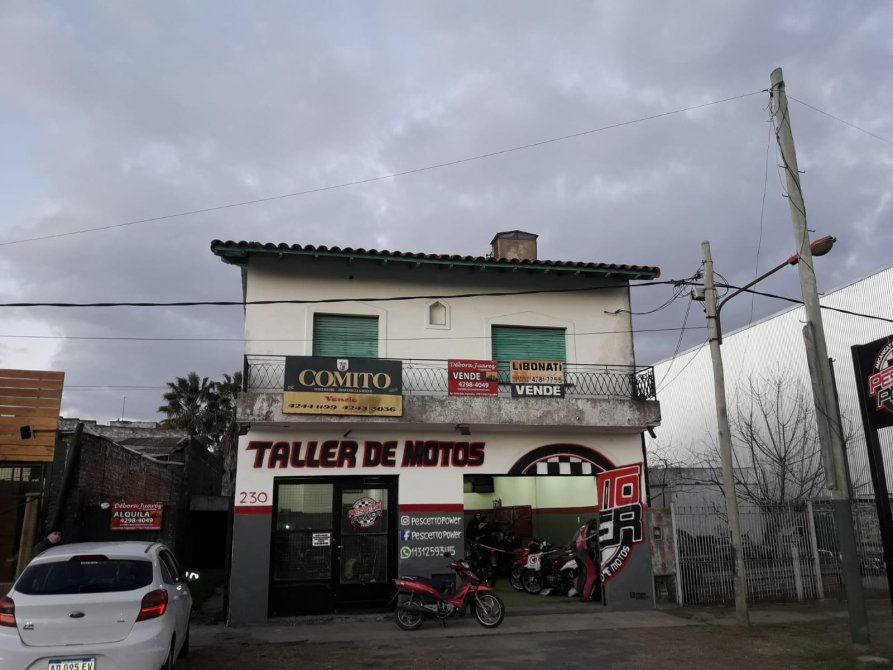 Propiedad ideal inversor, cuenta con dos locales amplios en la planta baja de 4x 10 y de 3 x 6.75, cada uno con su baño. Entrada de vehiculo pasante, garage cubierto. Parque libre. Por escalera se asciende a la vivienda que consta de amplio living, cocina comedor, dos dormitorios, baño y balcon.
